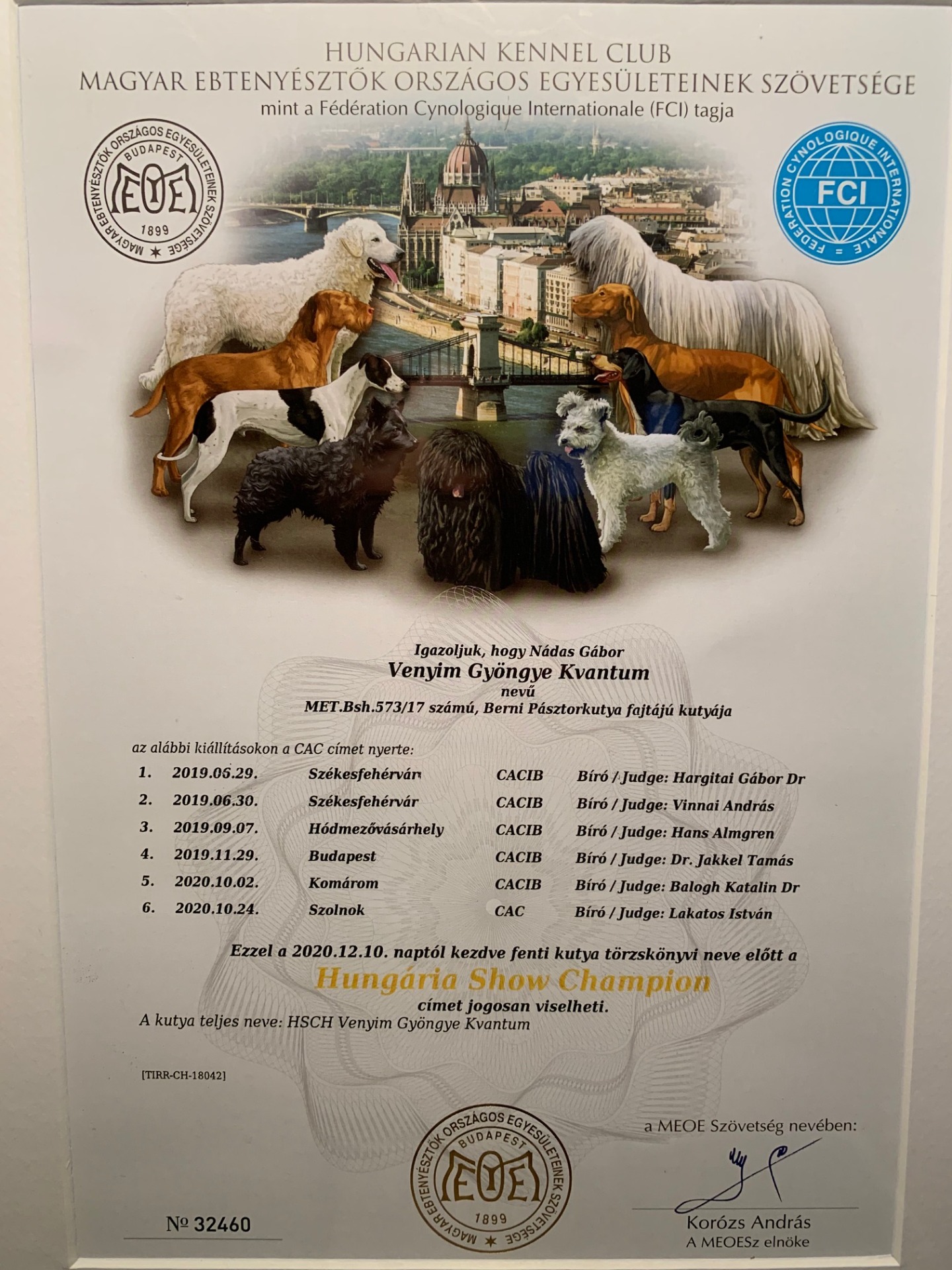HSCH címet kaptam, mivel 6 CAC címet szereztem a kiállításokon nyílt osztályban!